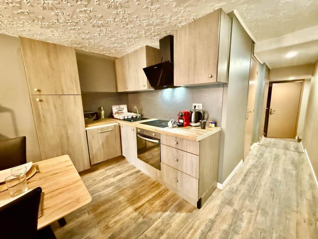 Coffee machine, Cooking utensils, Dishwasher, Kitchen stove, Kitchenette, Microwave, Oven, Refrigerator, Toaster