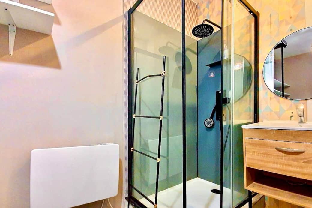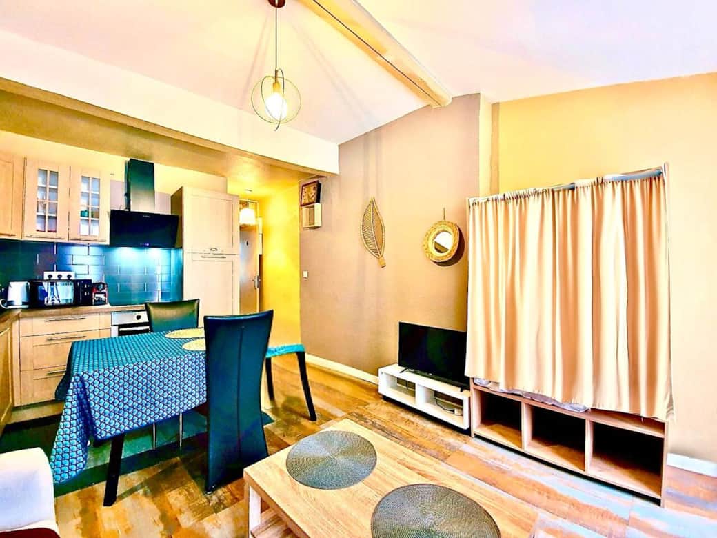 Studio Le Cocooning est fonctionnel ,lumineux et comprenant :Une pièce de vie agréable,un coin cuisine bien agencé,une salle d’eau avec WC.